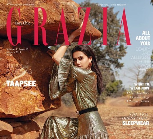 Taapsee Pannu was clad in a metallic outfit from Michael Kors, her ensemble which included crushed silk bell sleeves blouse, and a matching flowy silk skirt. Styled by Pasham Alwani, she accessorised her outfit with a Zara suede belt and colourful tie-up ο¬ats from Hermes. Minimal make-up and a sleek hairdo rounded off her look beautifully.