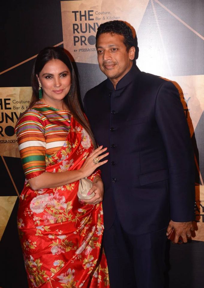 Lara Dutta attended the launch of a restaurant in Mumbai with husband Mahesh Bhupathi opted for a traditional look this time. The actor chose to wear a floral printed red sari teamed with a striped Mashru blouse, both from...