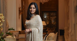 Isha Ambani looks gorgeous at the wedding party of Armaan Jain...